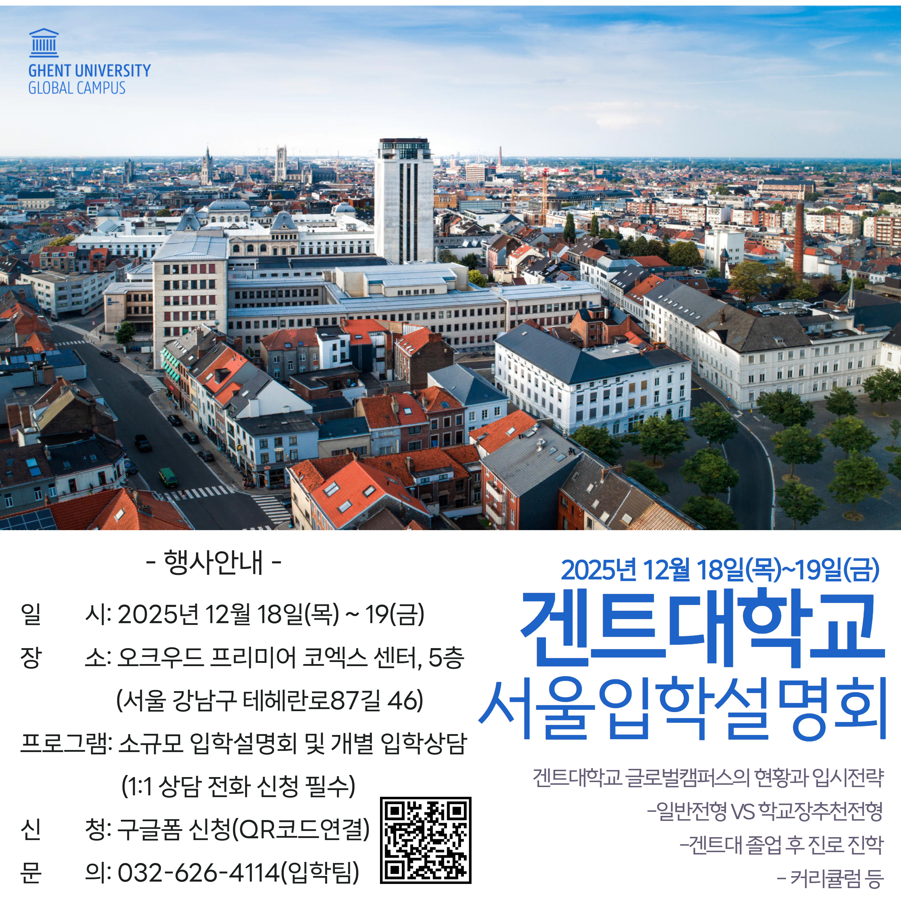 [행사안내] 겐트대학교 서울(삼성역) 입학설명회_25.12.18(목)~19(금)